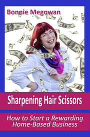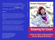 Author Bonnie Megowan, knows the ends and outs from her own experience and observing others. She writes from experience as a master shear sharpener. As CEO of Bonika Shears, she has over 30 years’ involvement assisting people like you, start their own home-based shear sharpening business. She sharpens, trains, writes and can be heard lecturing at stylists and sharpening conventions.