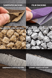 Traditional sandpaper uses a paper backing that can stretch, tear, and absorb moisture. Film abrasives use a durable polyester backing that remains flat and stable. The advantages: