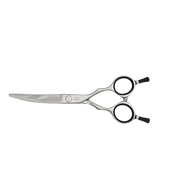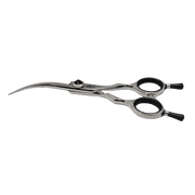The Panther Claw is an extreme claw-like curved shear, just 5.5". Get ready to roar! These lightweight, high-carbon steel shears are perfect for both wet and dry cutting. With a contoured handle shaped like panther ears, they're easy to palm and fit well into smaller hands. Plus, the shiny black thumb adjust tension screw makes them look as good as they feel. Get fitting, salon-quality results with every cut!